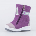 Валенки для девочки из натурального войлока сиреневого цвета Войлок- гипоаллергенный, дышащий материал, который создаёт благоприятный климат вокруг стопы и дарит сухое тепло. Дополнительно согревает подкладка - шерстяной мех из натуральной овечьей шерсти. Две молнии обеспечивают хорошую раскрываемость модели и позволяют быстро обуваться и разуваться. Носочная и пяточная части защищены кожаными накладками с полиуретановым покрытием, которые продлевают срок службы обуви и защищают ее от химических реагентов. Подошва из ТЭП (термоэластопласта) гибкая, амортизирующая и очень устойчивая, что особенно важно для зимней обуви. Модель анатомически правильная: имеет небольшой каблучок/танкетку, в меру жёсткий задник и круглый носок. Стелька из натуральной шерсти приформовывается к своду стопы, таким образом создавая индивидуальную анатомическую форму внутреннего пространства в обуви, подходящую только вашему ребенку. Это положительно влияет на правильное развитие стоп и всего опорно-двигательного аппарата.