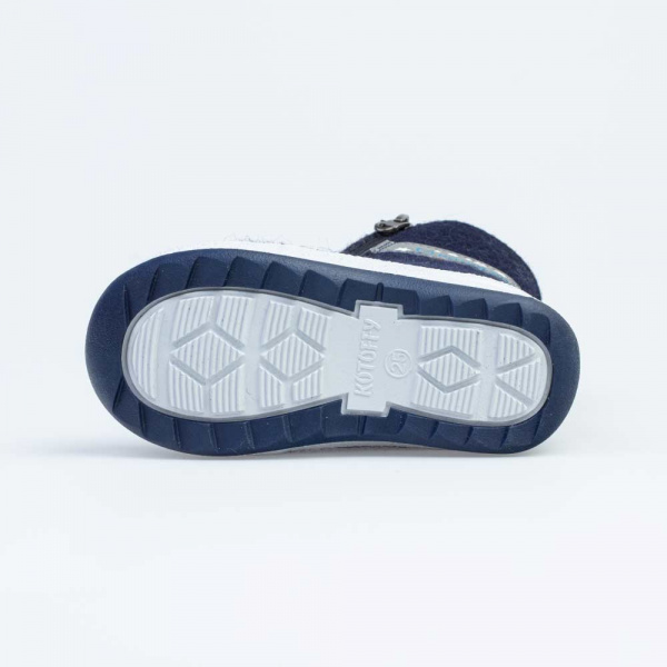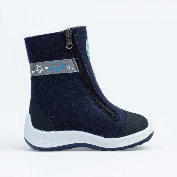 Сапожки войлочные (валенки) выполнены в сочетании материалов: войлок и мех из натуральной овечьей шерсти на трикотажной основе. Подошва модели клеевая. Материал подкладки - шерстяной мех из натуральной овечьей шерсти отлично сохраняет тепло, отводит влагу от ноги, придает дополнительный комфорт.Модель дополнена нашивкой и светоотражающим элементом, что повышает безопасность в темное время суток. Пяточная и носочная части защищены натуральной кожей с полиуретановым покрытием. Фиксация на ножке достигается благодаря двум молниям, отлично раскрывающих модель во время процесса обувания. Тепло и удобство валенок принесут радость вашему ребенку от долгих морозных прогулок!